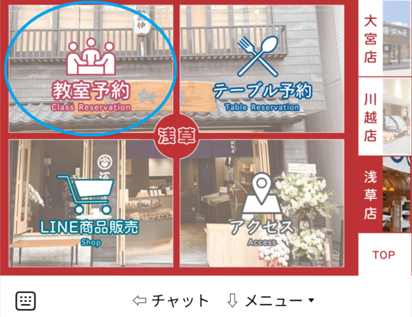 もしくは、河村屋公式LINEメニュー「浅草店」-「教室予約」からご予約ください。