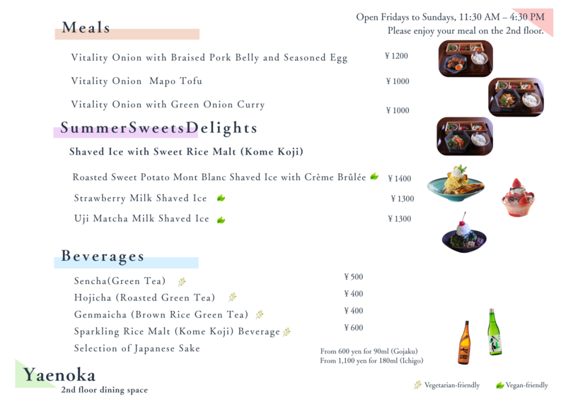 ※ご好評いただきました米麹かき氷「濃厚コーンクリームスープ」「フルーツトマトのカプレーゼ」は9月28日(日)でご提供終了いたしました。